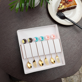 Ensemble cuillère et fourchette en métal de conception créative moderne de sucette polonais miroir pour les desserts et le café comprend une boîte-cadeau
