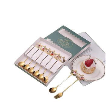 Cuillère à pendentif de Noël moderne à cinq branches mignonne fourchette à dessert en métal boîte-cadeau pour les fêtes coffret cadeau
